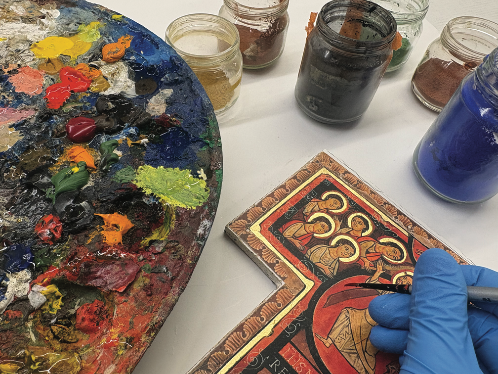 • La prima sezione, “Dalla parola all’immagine”, analizza le fonti testuali che hanno alimentato la fantasia degli artisti: agiografie, leggende, cronache e racconti di miracoli che si sono trasformati in icone potenti e riconoscibili, gettando le basi di un linguaggio visivo che ha attraversato secoli e culture.