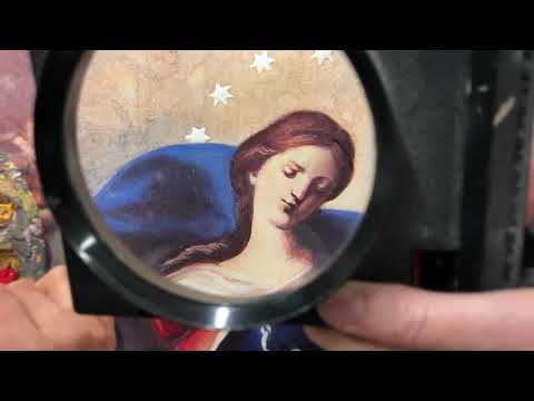 La Vergine, dal volto tenerissimo e dolcissimo, è concentrata sul compito che le è affidato: sciogliere i nodi, sia grossi che piccoli, di un nastro bianco aggrovigliato, simbolo delle nostre vite.